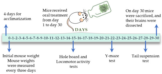 - Nazir, N.; Zahoor, M.; Nisar, M.; Karim, N.; Latif, A.; Ahmad, S.; Uddin, Z. Evaluation of neuroprotective and anti-amnesic effects of Elaeagnus umbellata Thunb. On scopolamine-induced memory impairment in mice. BMC Complement. Med. Ther. 2020, 20, 1–17. [Google Scholar] [CrossRef]