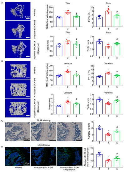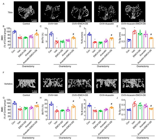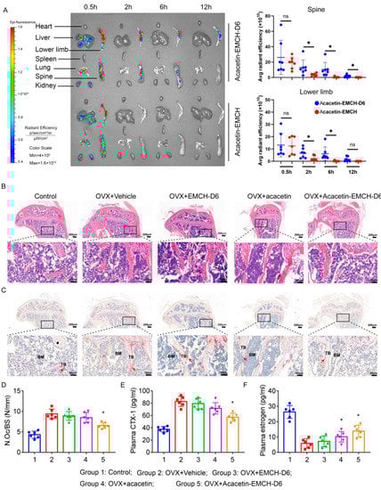 2.4. Acacetin-EMCH-D6 Treatment Inhibited OVX-Induced Bone Loss in Mice