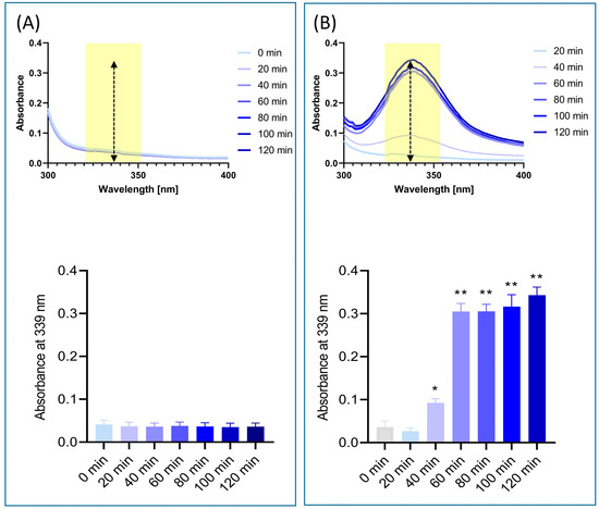 During the digestion phase, chyme and digestae samples were collected every 20 min, and analyzed for Cologrit tablet dissolution using UV-1800 spectrometer (Shimadzu, Kyoto, Japan). A full spectrum UV scan (200–1000 nm) was performed using the samples and Cologrit specific absorbance spectra λmax were determined at 339 nm, with no optical interferences in the presence of biomolecules. Spectragryph software (Software-Entwicklung, Oberstdorf, Germany) was used to spectra and data processing.
