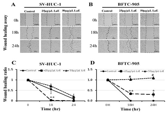 2.2. LaE Inhibited Migration Ability of Human Bladder Cancer Cells