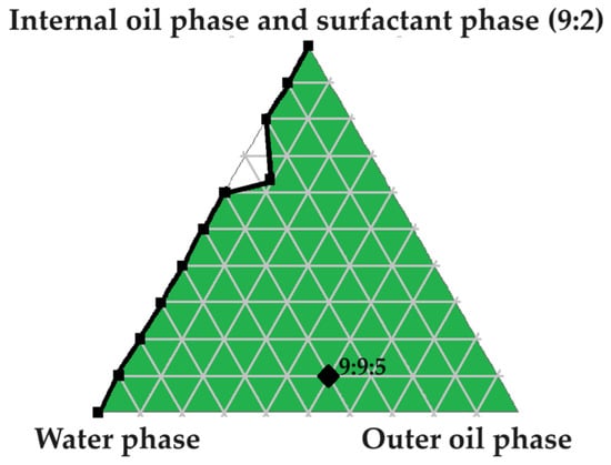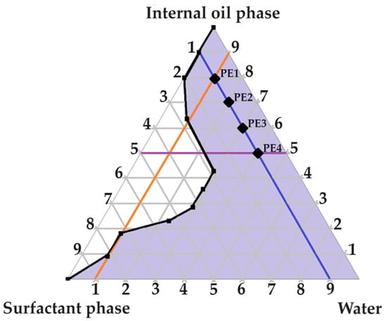 3.3.3. Construction of a Pseudoternary Phase Diagram to Find Potential Primary Emulsions