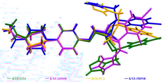The conformation overlay of KTZ molecule in the four newly obtained multi-components.