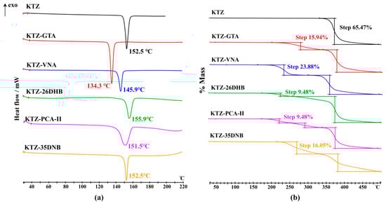 The (a) DSC and (b) TGA scans of KTZ and its multi-component crystals.