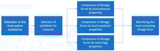 At the next stage of the solubility study, micelle-forming solubilizers and an anesthetic in the form of the ETH·HCl salt were used. As a result, ETH·HCl solutions with concentrations of at least 20 mg/mL in 4% Kolliphor ELP and 4% Pluronic F127 were obtained.