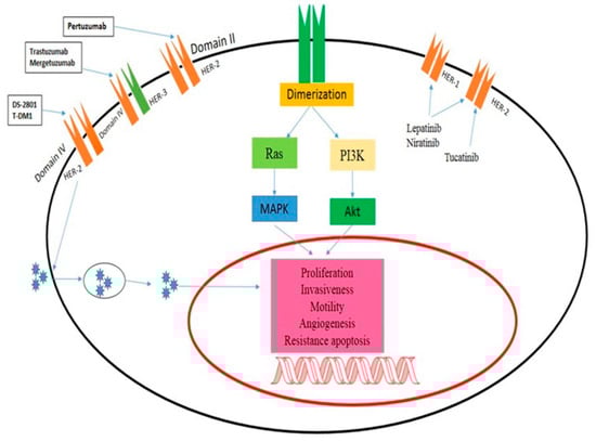 Mechanism of action of ErbB2-targeted drugs. Panitumumab inhibits Domain II in HER-2, trastuzumab-induced heart failure, and the cardiomyopathy brought on by ErbB2 deletion have led many to the conclusion that trastuzumab induces cardiotoxicity by impeding the physiological functions of ErbB2 in the heart.