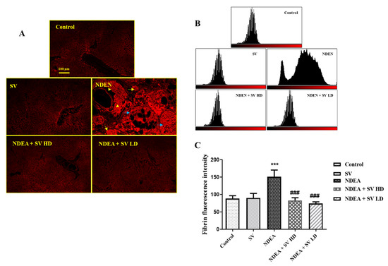 2.4. Effect of NDEA with or without SV on Fibrinogen Protein Expression