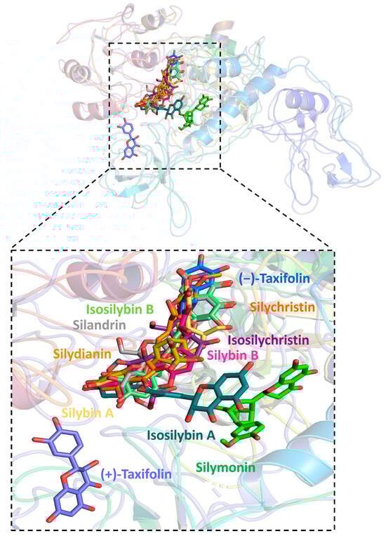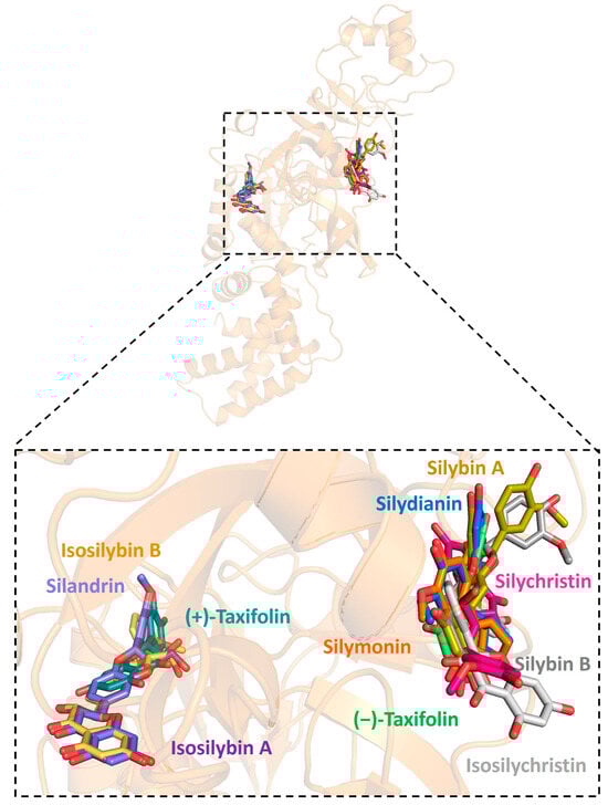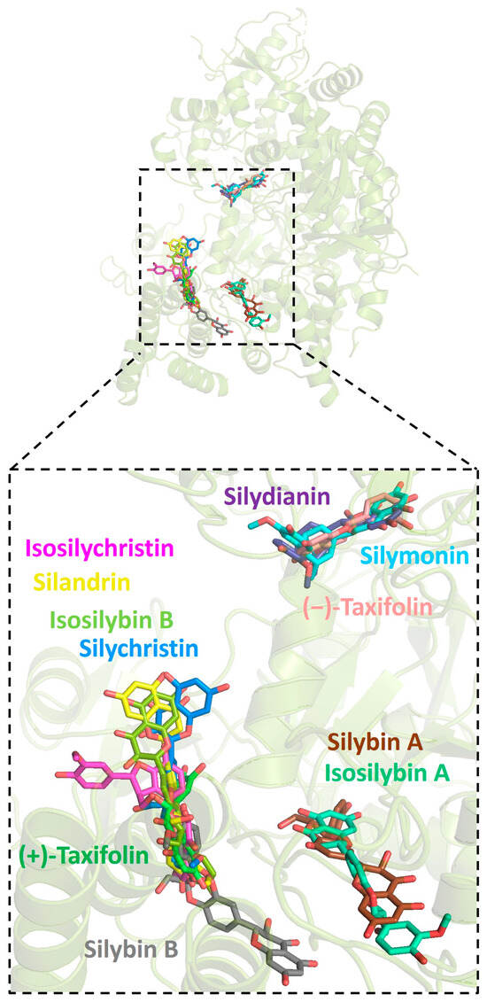 | Silybin B | −10.2 | −7.9 | −9.6 | −9.1 | −8.9 | −8.6 |