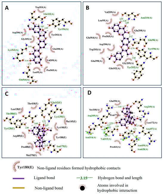 2.4. Residues Involved in Hydrophobic and Other Protein–Ligand Interactions