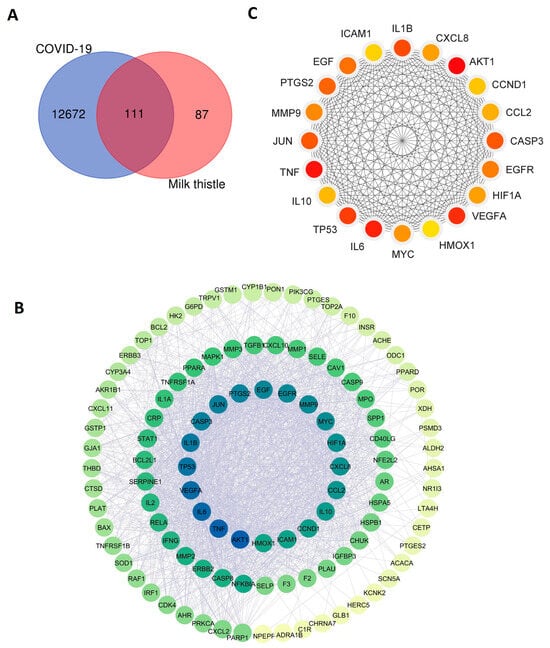2.7. Screening of COVID-19-Associated Genes and Silymarin Target Genes