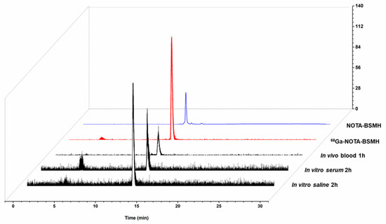 2.3. In Vitro Evaluation of [68Ga]BMSH
