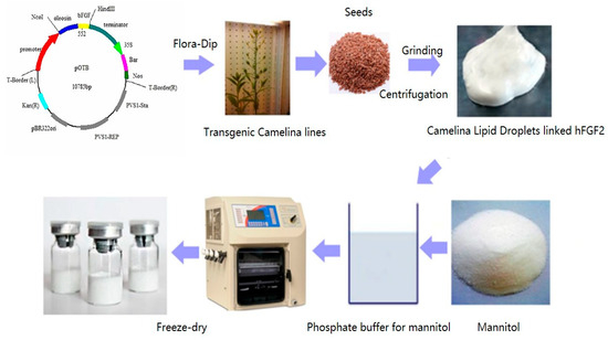 - Yang, J.; Guan, L.; Guo, Y.; Du, L.; Wang, F.; Wang, Y.; Zhen, L.; Wang, Q.; Zou, D.; Chen, W.; et al. Expression of biologically recombinant human acidic fibroblast growth factor in Arabidopsis thaliana seeds via oleosin fusion technology. Gene 2015, 566, 89–94. [Google Scholar] [CrossRef]