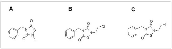- Nasim, S.; Guzman, M.L.; Jordan, C.T.; Crooks, P.A. Discovery of 1,2,4-Thiadiazolidine-3,5-Dione Analogs That Exhibit Unusual and Selective Rapid Cell Death Kinetics against Acute Myelogenous Leukemia Cells in Culture. Bioorg Med. Chem. Lett. 2011, 21, 4879–4883. [Google Scholar] [CrossRef][Green Version]