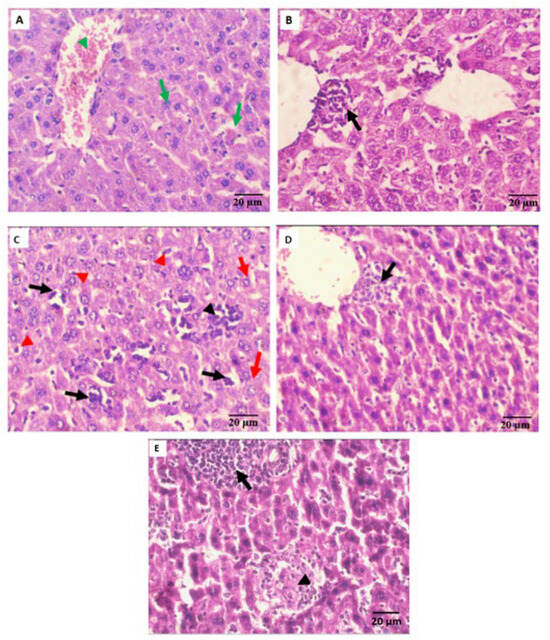 3.6.2. Hematological, Biochemical, and Histopathological Assessments