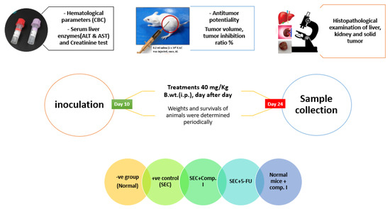 | Groups | Negative Control | Normal + Comp. I | Positive Control (SEC) | SEC + 5-FU | SEC + Comp. I | ||