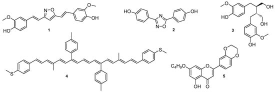 The synthesis of artificial small-molecule antioxidants is currently a developing branch in synthetic organic chemistry. Structural modifications of natural radical scavengers or the design of new bioactive molecules with antioxidant potential enable the design of antioxidants with enhanced activity and bioavailability, along with minimized toxicity. Some examples of nature-inspired radical scavengers, including synthetic analogues of curcumin 1, resveratrol 2, lignan-based 3, β-carotene 4 and flavonoid derivative 5, are presented in Figure 1 [6].