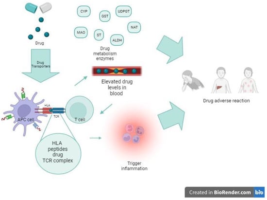 - Jaruthamsophon, K.; Thomson, P.J.; Sukasem, C.; Naisbitt, D.J.; Pirmohamed, M. HLA Allele-Restricted Immune-Mediated Adverse Drug Reactions: Framework for Genetic Prediction. Annu. Rev. Pharmacol. Toxicol. 2022, 62, 509–529. [Google Scholar] [CrossRef]
