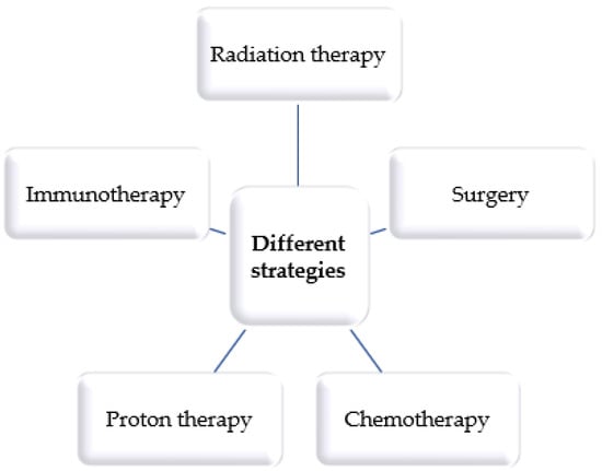 A pivotal consideration underscores the dynamic nature of cancer, characterized by an incessant evolutionary trajectory marked by the accrual of mutational load over time. Consequently, despite the exponential strides in knowledge, the clinical stewardship of malignancies in the 21st century remains ensnared in the web of escalating intricacy, rendering the treatment landscape a formidable domain to navigate. The armamentarium of conventional therapeutic modalities encompasses an array of approaches, including radiotherapy, surgical intervention, chemotherapy, proton therapy, and immunotherapy (Figure 3). Nonetheless, each of these avenues presents its unique constellation of limitations and prospective adverse ramifications [58,59].