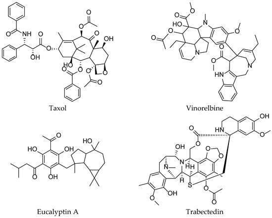 Some chemical structures of the active ingredients of drugs used in clinical cancer therapies.