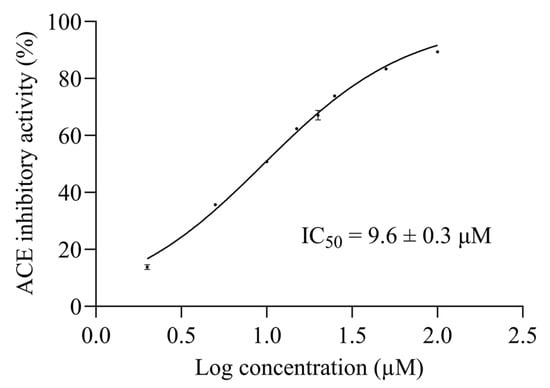 3.5. Determination of Angiotensin-I-Converting Enzyme Inhibitory (ACEI) Activity and Its Half-Maximal Inhibitory Concentration