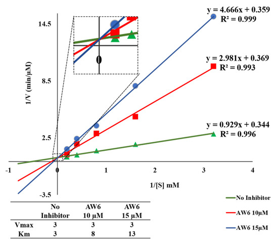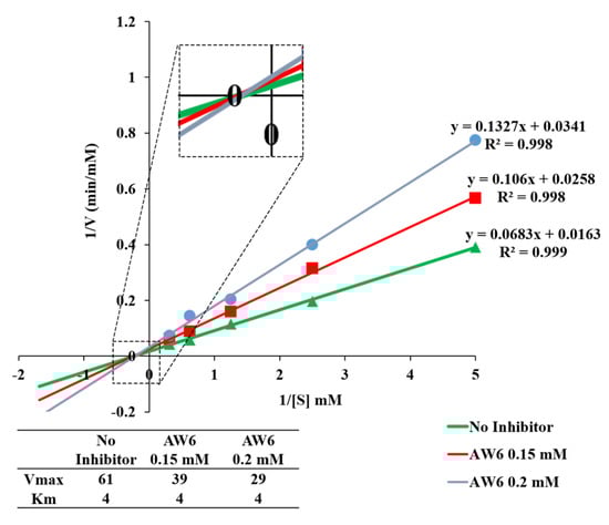 The double–reciprocal plot of AW6 toward DPP4.