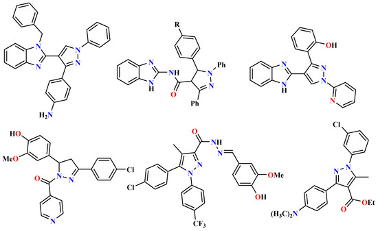 - Marinescu, M. Synthesis of Antimicrobial Benzimidazole–Pyrazole Compounds and Their Biological Activities. Antibiotics 2021, 10, 1002. [Google Scholar] [CrossRef] [PubMed]