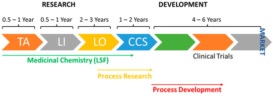 Schematic depiction of drug discovery process. TA: target assessment; LI: lead identification; LO: lead optimization; CCS: clinical candidate selection; LSF: late-stage functionalization.