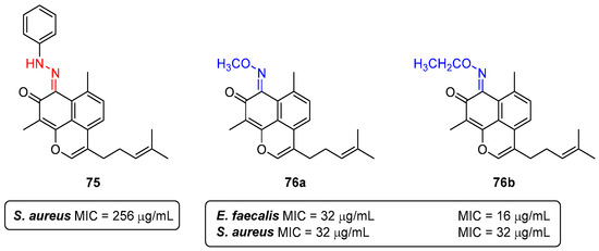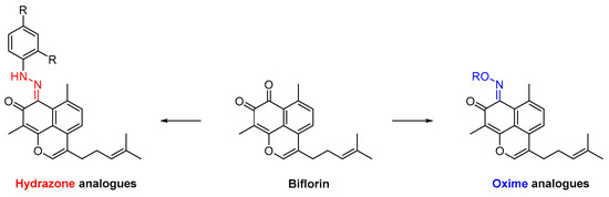 - Souza, L.G.d.S.; Almeida, M.C.S.; Lemos, T.L.G.; Ribeiro, P.R.V.; de Brito, E.S.; Silva, V.L.M.; Silva, A.M.S.; Braz-Filho, R.; Costa, J.G.M.; Rodrigues, F.F.G.; et al. Synthesis, antibacterial and cytotoxic activities of new biflorin-based hydrazones and oximes. Bioorganic Med. Chem. Lett. 2016, 26, 435–439. [Google Scholar] [CrossRef]