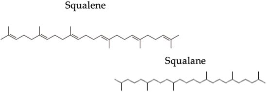 Figure 1 illustrates the chemical differences between squalene and squalane. As mentioned earlier, the squalane represent the saturated form of squalene.