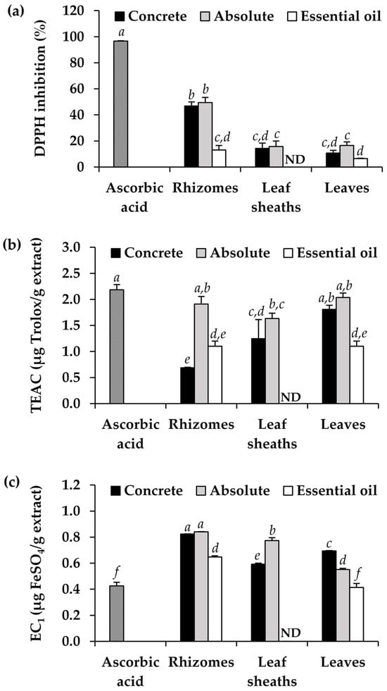 2.4. Antioxidant Activities of H. coronarium Aromatic Extracts