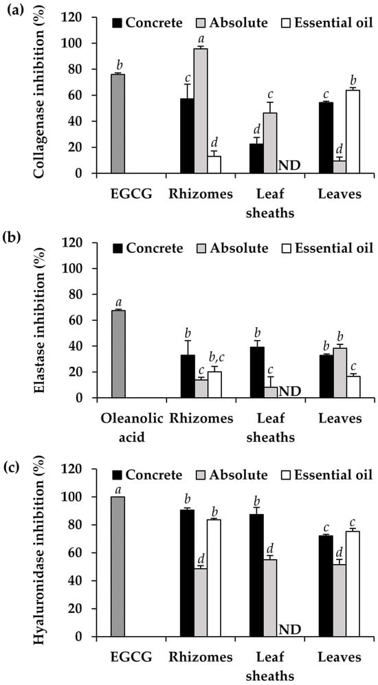 Tammasorn, P.; Charoensup, W.; Bunrod, A.; Kanjanakawinkul, W.; Chaiyana, W. Promising Anti-Wrinkle Applications of Aromatic Extracts of Hedychium coronarium J. Koenig via Antioxidation and Collagenase Inhibition. Pharmaceuticals 2023, 16, 1738. https://doi.org/10.3390/ph16121738
