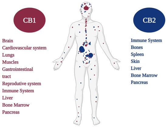 CB1 and CB2 cannabinoid receptors and their distribution in the human body.