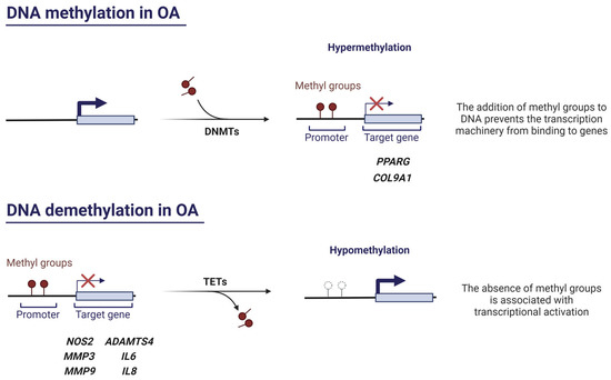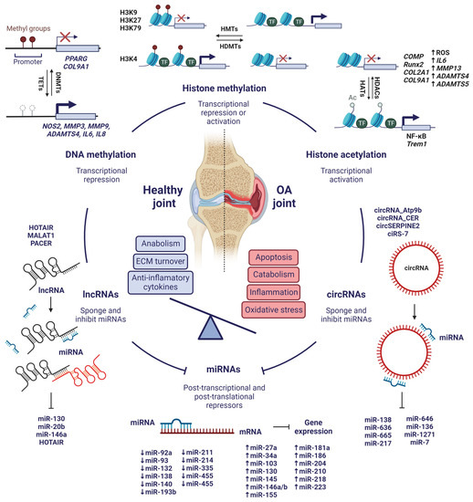 - Papathanasiou, I.; Trachana, V.; Mourmoura, E.; Tsezou, A. DNA methylation regulates miR-140-5p and miR-146a expression in osteoarthritis. Life Sci. 2019, 228, 274–284. [Google Scholar] [CrossRef]