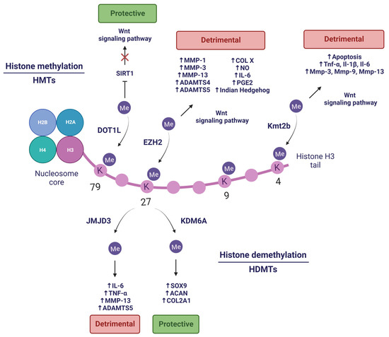 - Cornelis, F.M.F.; de Roover, A.; Storms, L.; Hens, A.; Lories, R.J.; Monteagudo, S. Increased susceptibility to develop spontaneous and post-traumatic osteoarthritis in Dot1l-deficient mice. Osteoarthr. Cartil. 2019, 27, 513–525. [Google Scholar] [CrossRef]