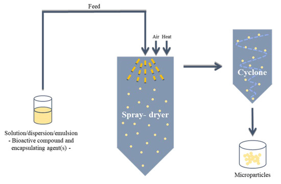 - Assadpour, E.; Jafari, S.M. Advances in Spray-Drying Encapsulation of Food Bioactive Ingredients: From Microcapsules to Nanocapsules. Annu. Rev. Food Sci. Technol. 2019, 10, 103–131. [Google Scholar] [CrossRef]