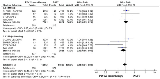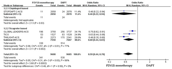 2.3. Subgroup Analysis of Different P2Y12 Inhibitors