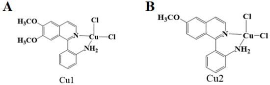 Chemical structure of Cu1 (A) complex and Cu2 (B).
