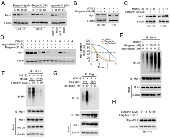 2.2. Bergenin Promotes Mcl-1 Degradation and Ubiquitination