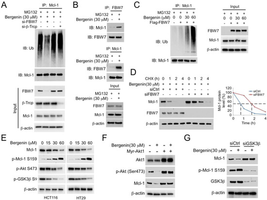 2.3. (FBW7) Is Required for Bergenin-Induced Ubiquitination of Mcl-1