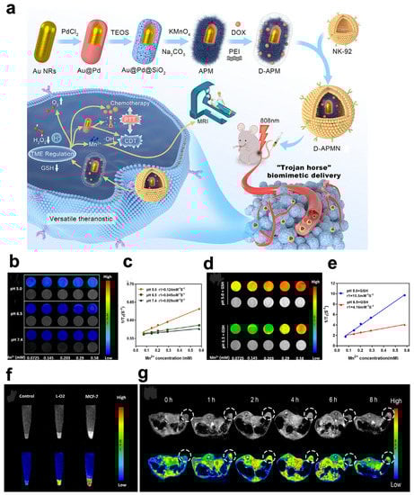 - Huang, Q.; Pan, Y.; Wang, M.; Liu, Z.; Chen, H.; Wang, J.; Zhao, Z.; Zhang, Y. Tumor Microenvironment–Responsive Versatile “Trojan Horse” Theranostic Nanoplatform for Magnetic Resonance Imaging–Guided Multimodal Synergistic Antitumor Treatment. Acta Biomater. 2022, 147, 270–286. [Google Scholar] [CrossRef]