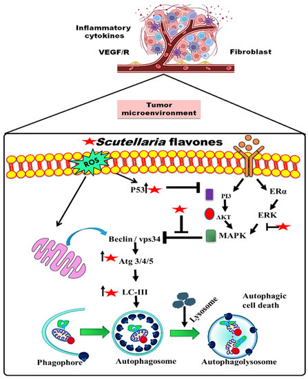 Numerous aspects of Scutellaria flavones related to autophagy death in cancer cells are covered in this review. The authors surveyed the literature, and few reviews showed the autophagy-targeting pathways in the cancer models using Scutellaria flavones. That is why the authors highlighted the autophagy-signaling pathways modulated by Scutellaria flavones.