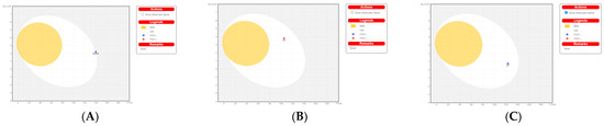 Bioled-egg model analysis using the SwissADME website. (A) Bioled-egg model analysis of Apcin; (B) Bioled-egg model analysis of compound 20. (C) Bioled-egg model analysis of compound 27. The blue dots indicate that the molecule is predicted to be a substrate for P-glycoprotein (PGP+) and will therefore be actively pumped out of the brain or gastrointestinal lumen. If the compound is not to be a substrate of p-glycoprotein (PGP, the relevant points are shown in red. WLOGP is the method for evaluating the lipophilicity of compounds shown in the ordinate diagram, and TPSA is the polar surface-area unit A of the compound.