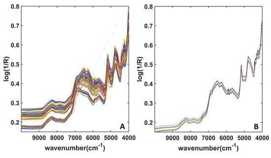 - Barnes, R.J.; Dhanoa, M.S.; Lister, S.J. Standard normal variate transformation and de-trending of near-infrared diffuse reflectance spectra. Appl. Spectrosc. 1989, 43, 772–777. [Google Scholar] [CrossRef]