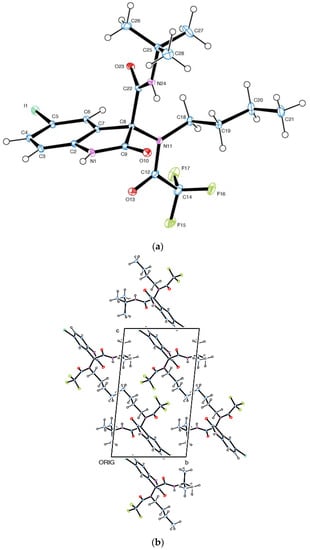 (a) ORTEP diagram of compound 17, obtained by single crystal X-ray diffraction, showing the molecular conformation and numbering. (b) Crystal packing of 17.