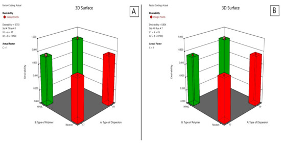 Desirability of S4 lyophilized nasal insert of ATM-loaded SLNs (A) and S8 (B).