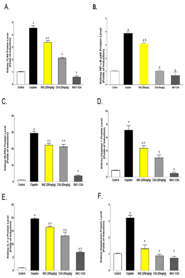 2.1. NAC and/or CGA Ameliorated Cp-Induced Nephrotoxicity