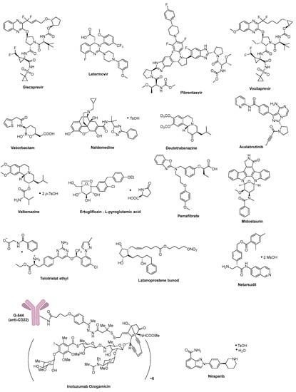 - Markham, A.; Keam, S.J. Danoprevir: First Global Approval. Drugs 2018, 78, 1271–1276. [Google Scholar] [CrossRef]