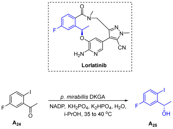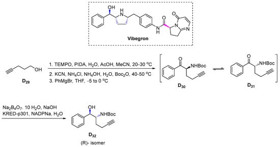 - Xu, F.; Kosjek, B.; Cabirol, F.L.; Chen, H.; Desmond, R.; Park, J.; Gohel, A.P.; Collier, S.J.; Smith, D.J.; Liu, Z.; et al. Synthesis of Vibegron Enabled by a Ketoreductase Rationally Designed for High Ph Dynamic Kinetic Reduction. Angew. Chem. Int. Ed. 2018, 57, 6863–6867. [Google Scholar] [CrossRef]