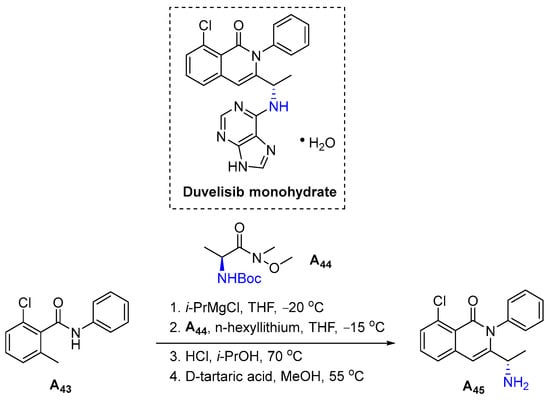 - Zhang, W.-Y.; Hogan, P.C.; Chen, C.-L.; Niu, J.; Wang, Z.; Lafrance, D.; Gilicky, O.; Dunwoody, N.; Ronn, M. Process Research and Development of an Enantiomerically Enriched Allylic Amine, One of the Key Intermediates for the Manufacture of Synthetic Tetracyclines. Org. Process Res. Dev. 2015, 19, 1784–1795. [Google Scholar] [CrossRef]