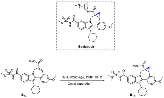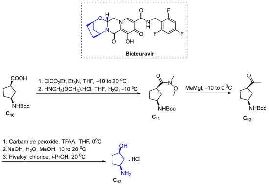 - Chiu, A.; Enquist, J.; Griggs, N.; Hale, C.; Ikemoto, N.; Keaton, K.A.; Kraft, M.; Lazerwith, S.E.; Leeman, M.; Peng, Z.; et al. Synthesis of Polycyclic-Carbamoylpyridone Compounds. US20150368264A1, 24 December 2015. [Google Scholar]