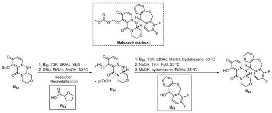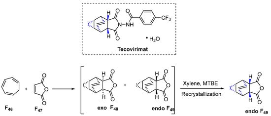 - Hughes, D.L. Review of the Patent Literature: Synthesis and Final Forms of Antiviral Drugs Tecovirimat and Baloxavir Marboxil. Org. Process Res. Dev. 2019, 23, 1298–1307. [Google Scholar] [CrossRef]